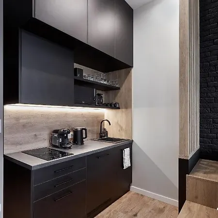 A fully furnished kitchen is equipped with tea/coffee making equipment, as well as a fridge, a toaster, and kitchenware for self-catering purposes. Serafitek bus stop is relatively close to Dluga 18 Apartament Premium Z Balkonem Apartment.